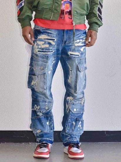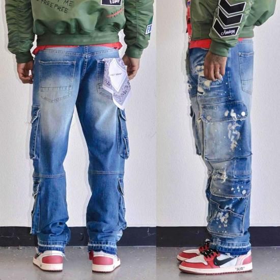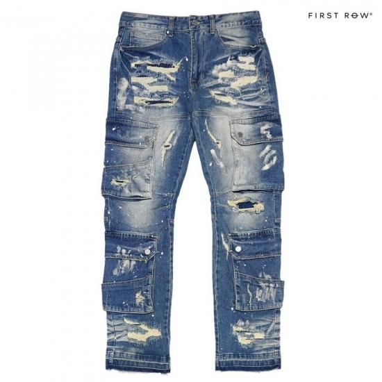 ¡ÚÁ÷ÎÁ̵ÎÁ¡ÛFIRST ROW UTILITY CARGO MULTI DENIM PANTS¡ÚWASH BLUE¡Û